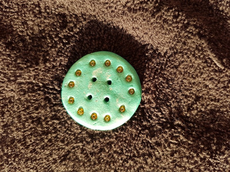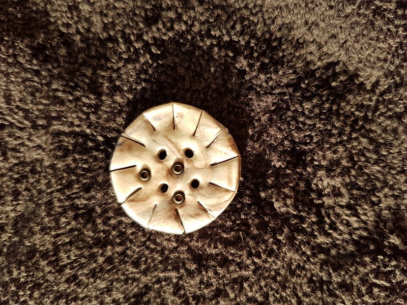 Knopf aus Fimo zur Dekoration von Kleidern, Hüten, Halstüchern, Taschen etc.