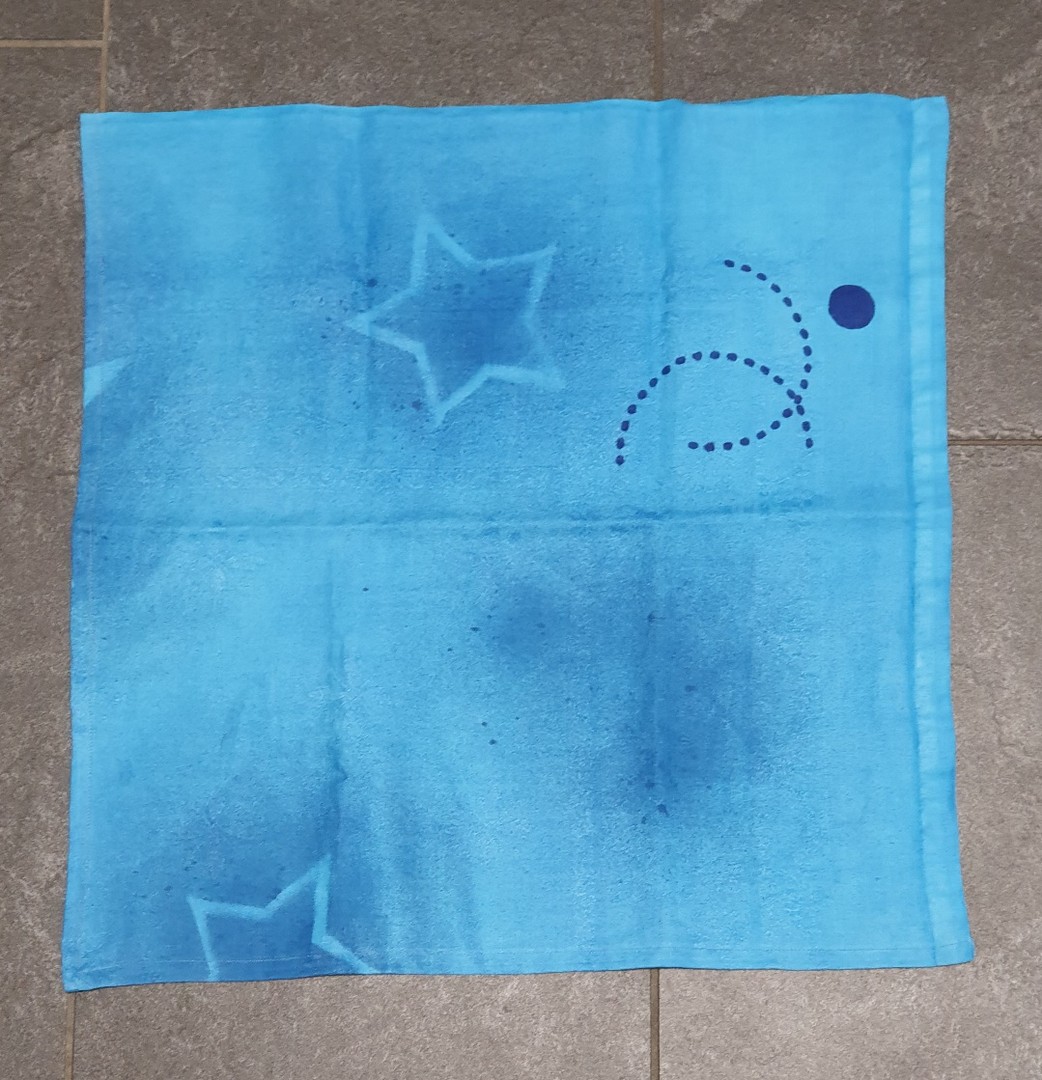 Das nachhaltige Geschenkpapier! Dieses Tuch ist quadratisch und hat eine Seitenlänge von ca. 46cm. Es eignet sich für eher kleine Geschenke.