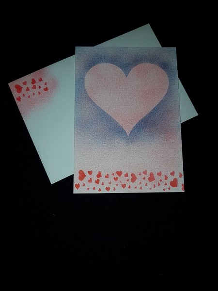 Herzmotiv rot / blau inkl. passendem Couvert, gefertigt mit Airbrushtechnik