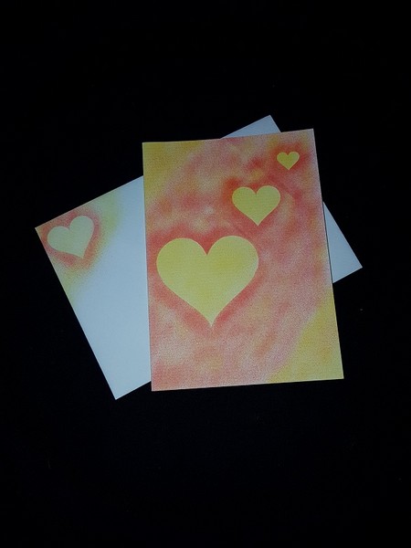 Herzmotiv rot / gelb inkl. passendem Couvert, gefertigt mit Airbrushtechnik
