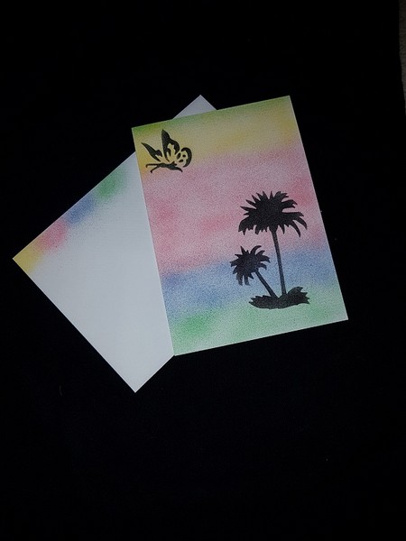 Ferienmotiv Palme inkl. passendem Couvert, gefertigt mit Airbrushtechnik