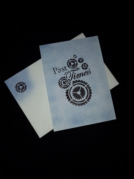 Zahnradmotiv blau / schwarz inkl. passendem Couvert, gefertigt mit Airbrushtechnik