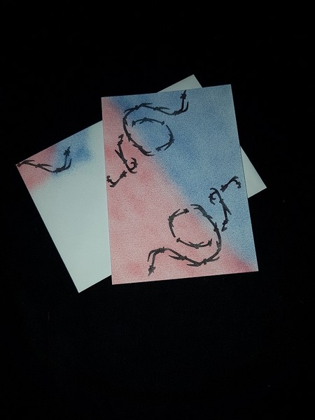 Stacheldrahtmotiv blau / rot inkl. passendem Couvert, gefertigt mit Airbrushtechnik