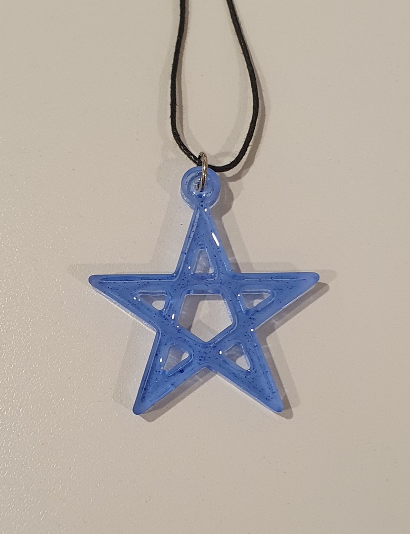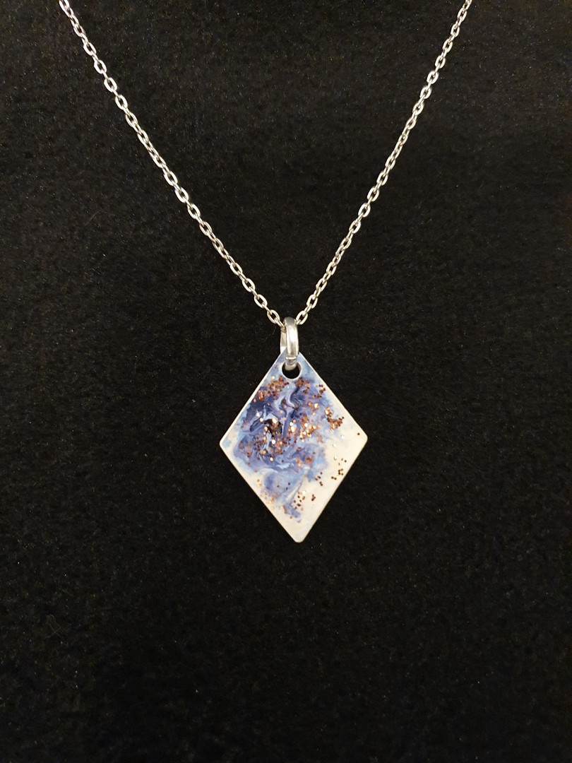 Der Halskettenanhänger ist aus Harz gegossen. Masse ca. 5x5cm. Kettenlänge ca. 54cm
