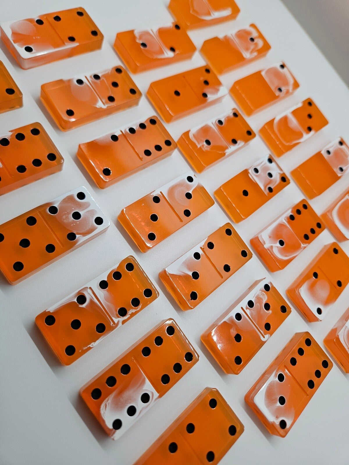 Das klassische Doppel-6-Domino-Spiel garantiert mit seinem exklusiven Aussehen Spielspass. Es ist aus Epoxidharz gegossen und jeder Stein ist einzigartig!