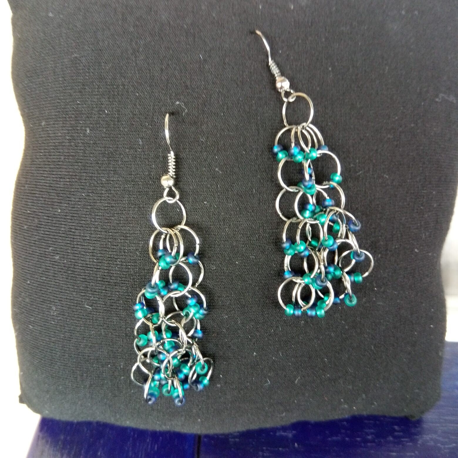 Diese Ohrringe mit Rocailles in türkis und dunkelblau unterstreichen Deine Einzigartigkeit. Länge ca. 6.5cm