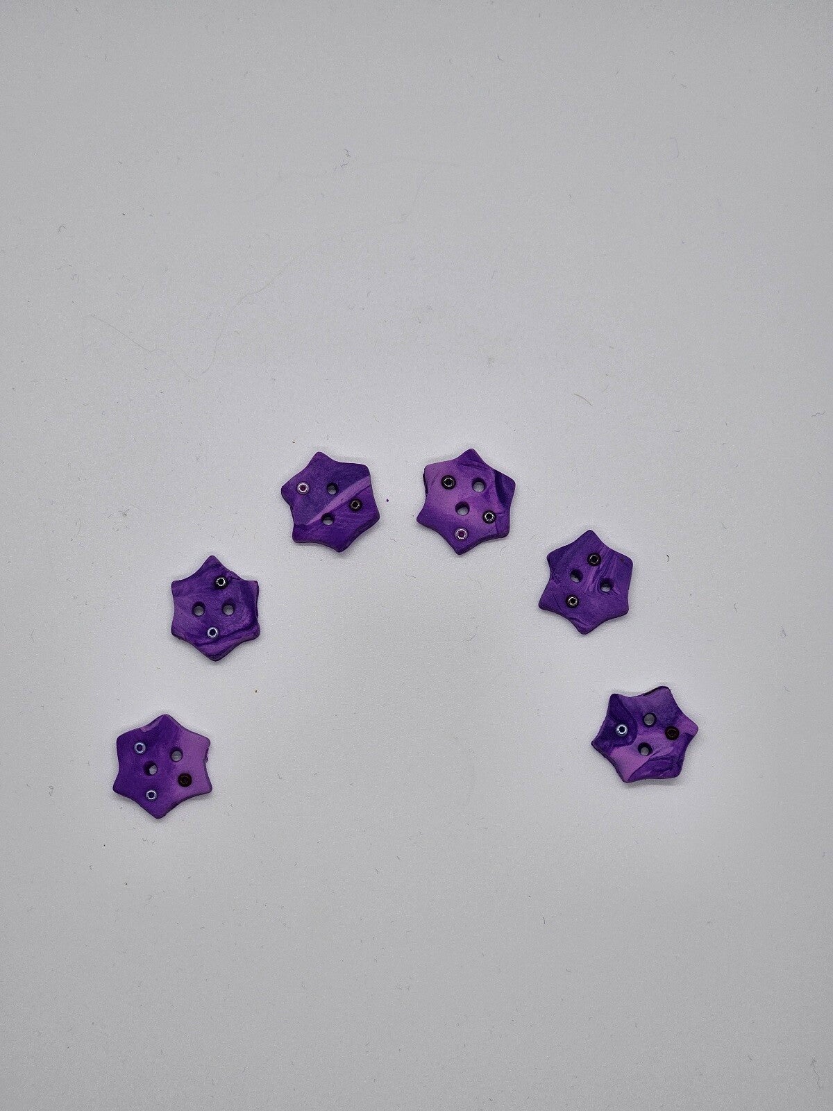 Dieses 6er Set handgemachte und mit Perlen verzierte Knöpfe aus Fimo sind Unikate. Sie können auch als dekorativer Eyecatcher auf Kleidung, Hüten oder Taschen angebracht werden. Durchmesser Ecke bis Ecke: 2cm