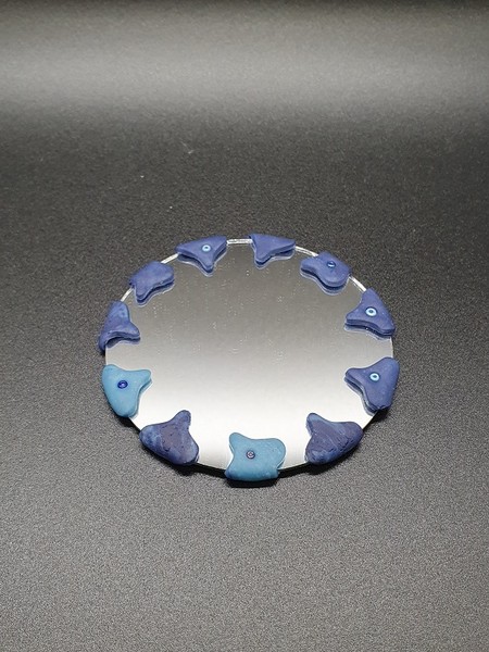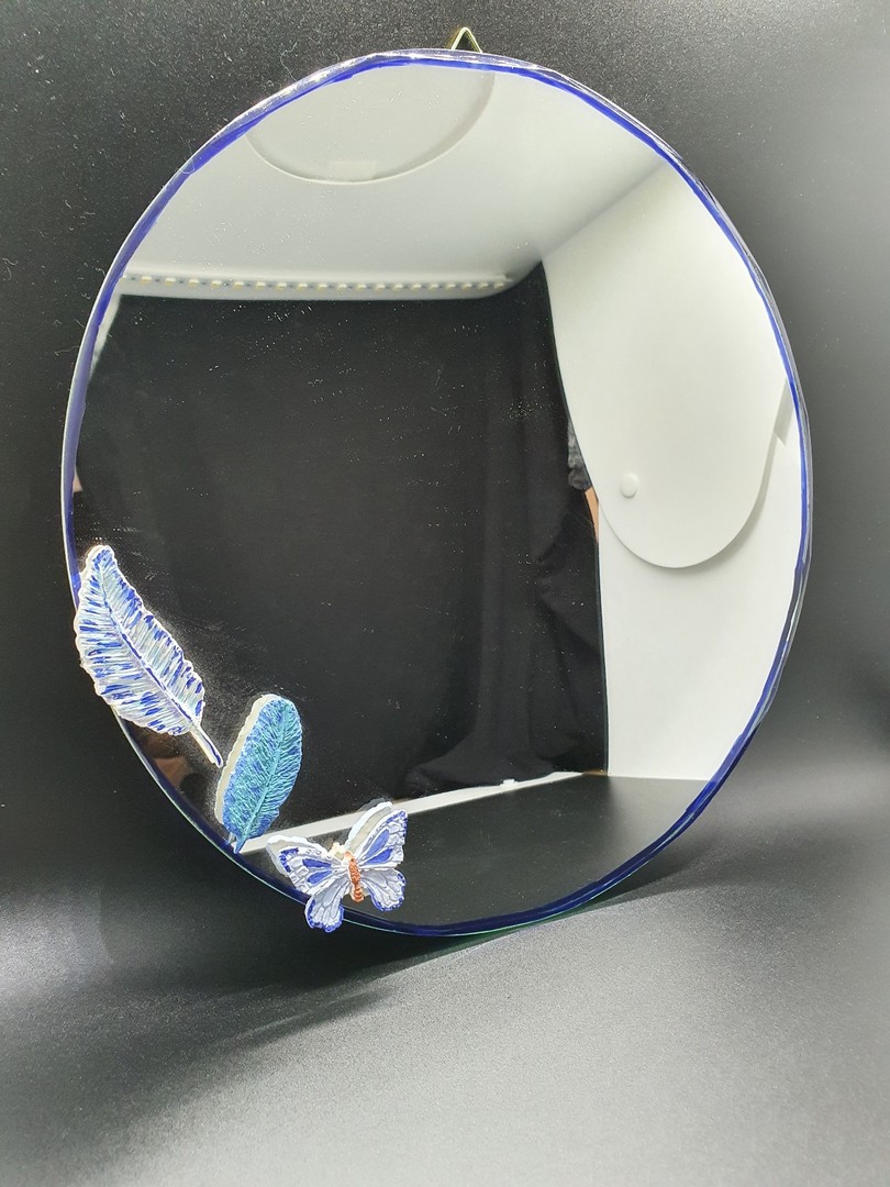 Einzigartiger kleiner Spiegel mit Fimoverzierung in blau