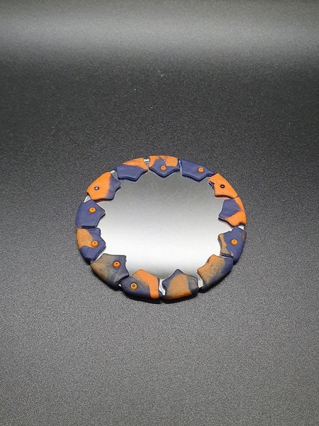 Einzigartiger kleiner Spiegel mit Fimoverzierung in blau und orange