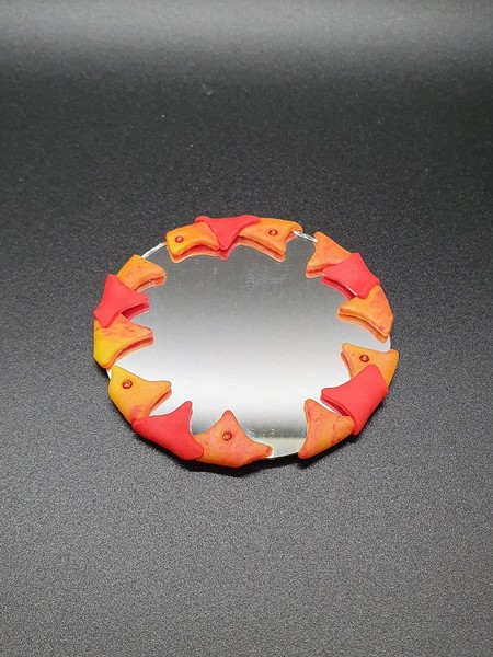 Einzigartiger kleiner Spiegel mit Fimoverzierung in orange und rot